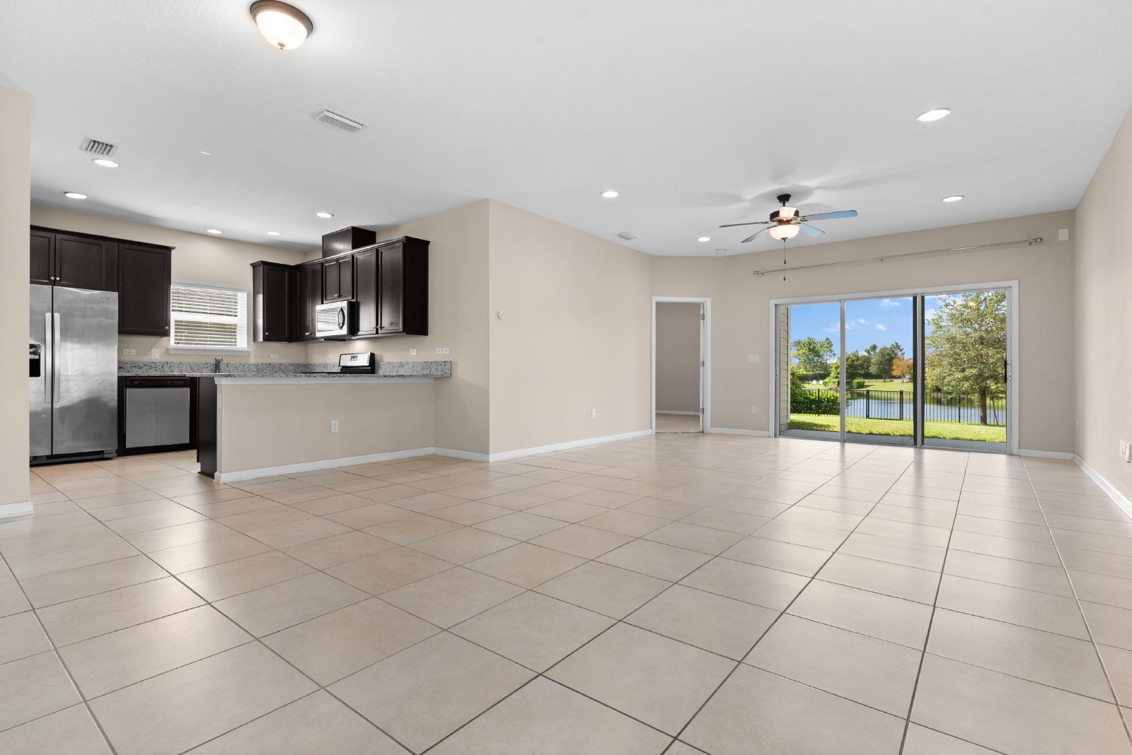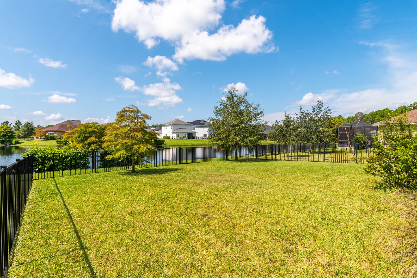 Remaining three bedrooms are upstairs. Great loft area upstairs, perfect for home office area or kids play area. Laundry is upstairs. Washer and Dryer CONVEY. Home sits on a large lot overlooking the lake with a covered patio, fenced yard.