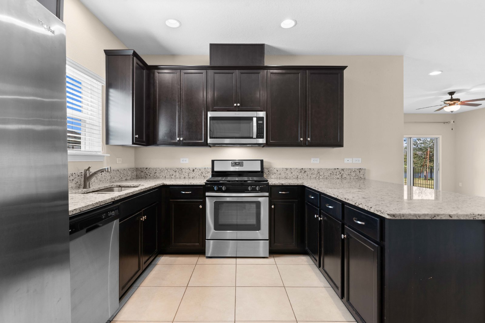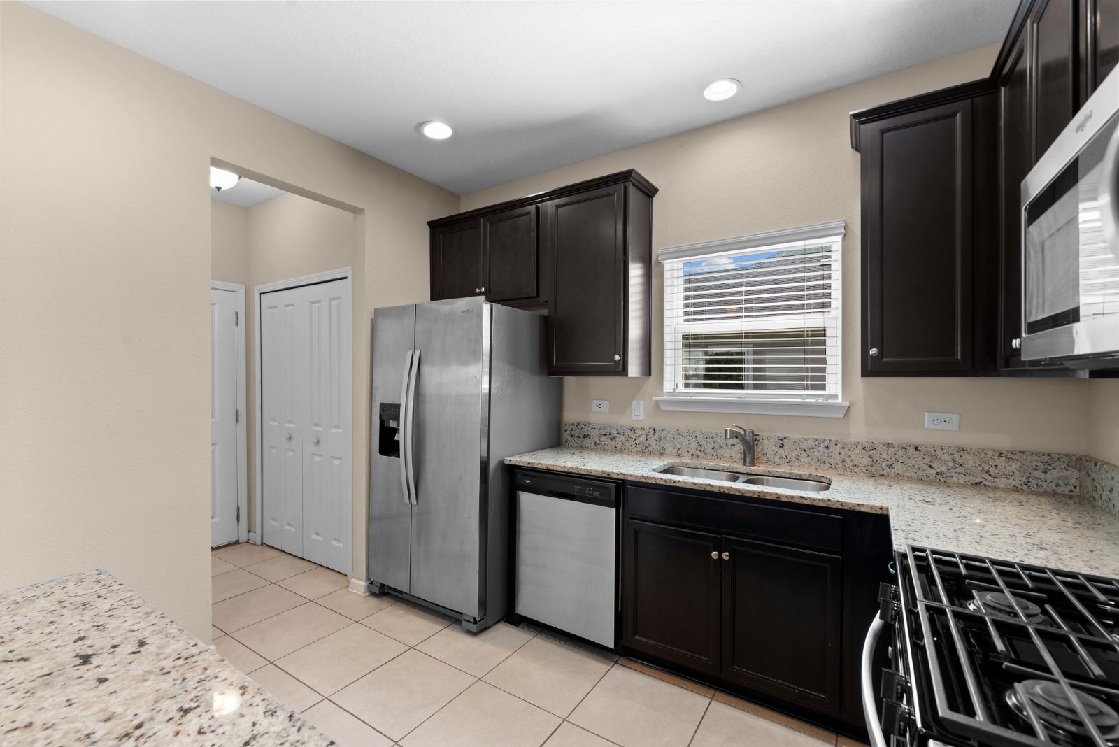 This home offers four bedrooms and two and a half baths. Open floor plan downstairs with tile throughout, Kitchen offers plenty of cabinet space, granite counter tops, top of the line appliances, and a large pantry. Master is located on main floor. Large En Suite with Dual Vanities, LARGE walk in closet, stand up shower, and separate water room.