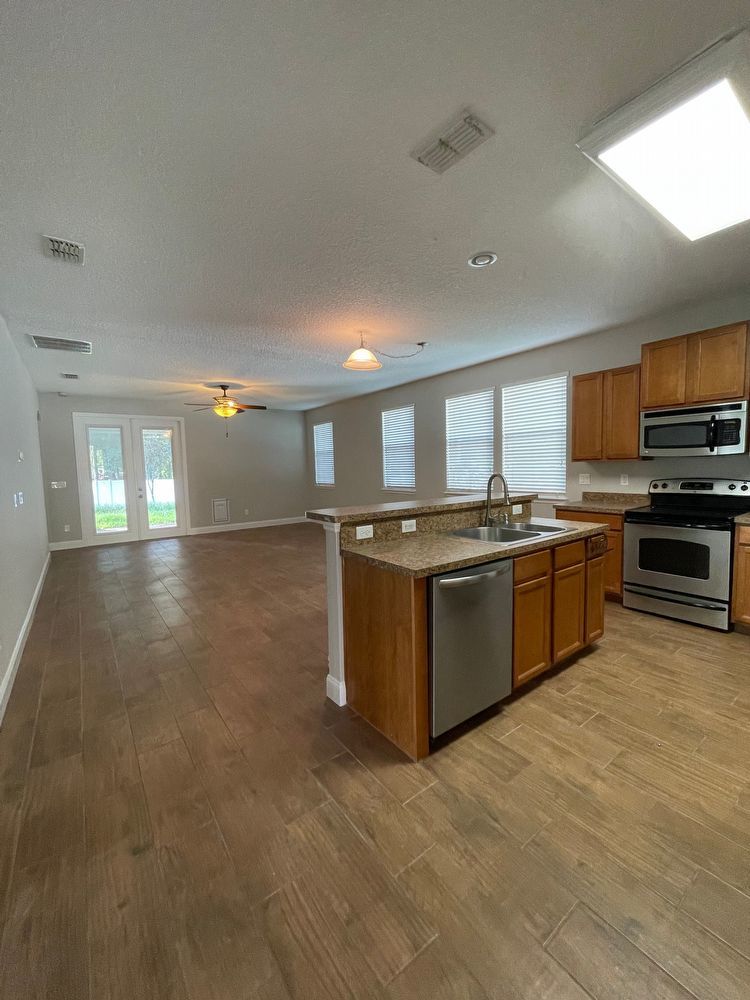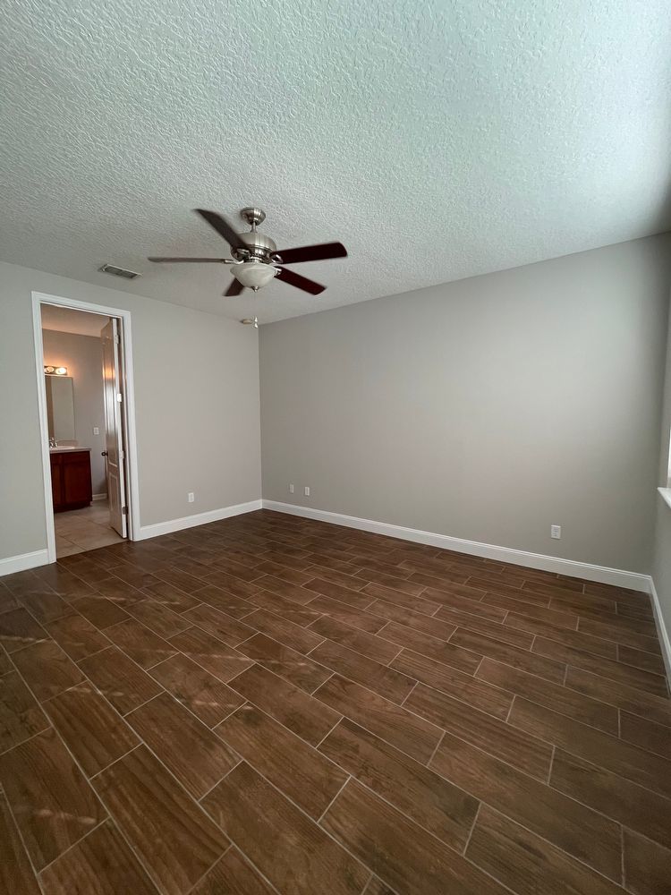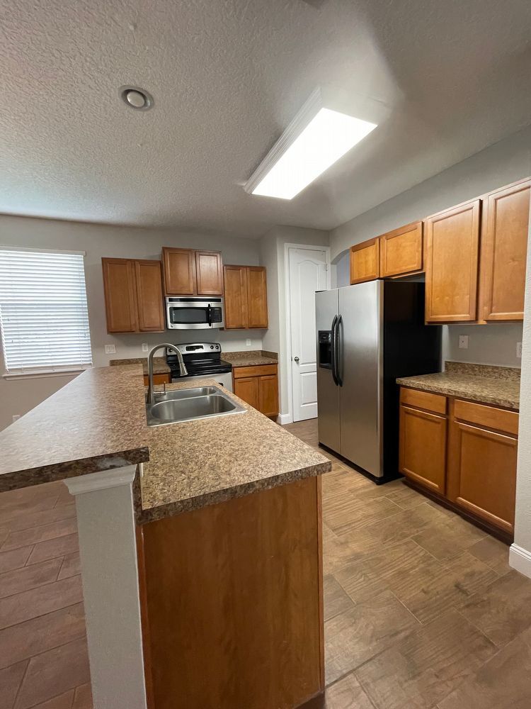 Cul De Sac home, with HUGE corner yard. Formal dining space in front of home. Living room is open to the kitchen. Gorgeous wood look tile throughout home, FRESH PAINT throughout too! Bedrooms are carpeted. Secondary bedrooms in front of home, laundry inside, near garage. Primary bedroom is in rear of home, with en suite. Soaking tub, and separate shower; with dual sink. Enjoy the covered patio, and your large yard! Enjoy the amenities of Lexington Park with this home.