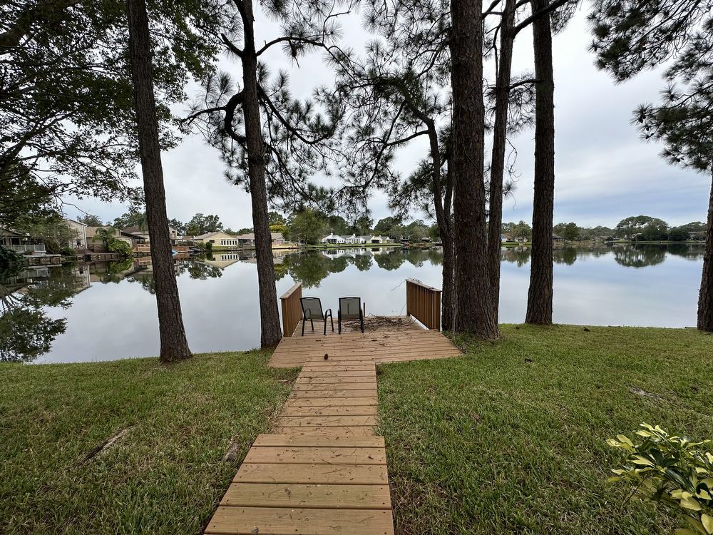 Enjoy your peaceful view of the lake with dock and screened patio! This charming townhome unit with one car garage is situated in a prime location close to all accesses of Mandarin, 295, and minutes to 95! Enjoy living space, kitchen, storage and half bathroom on the bottom level. Upstairs you will find both bedrooms and a little landing area. Washer and dryer do convey as convenience items and are located in the garage.