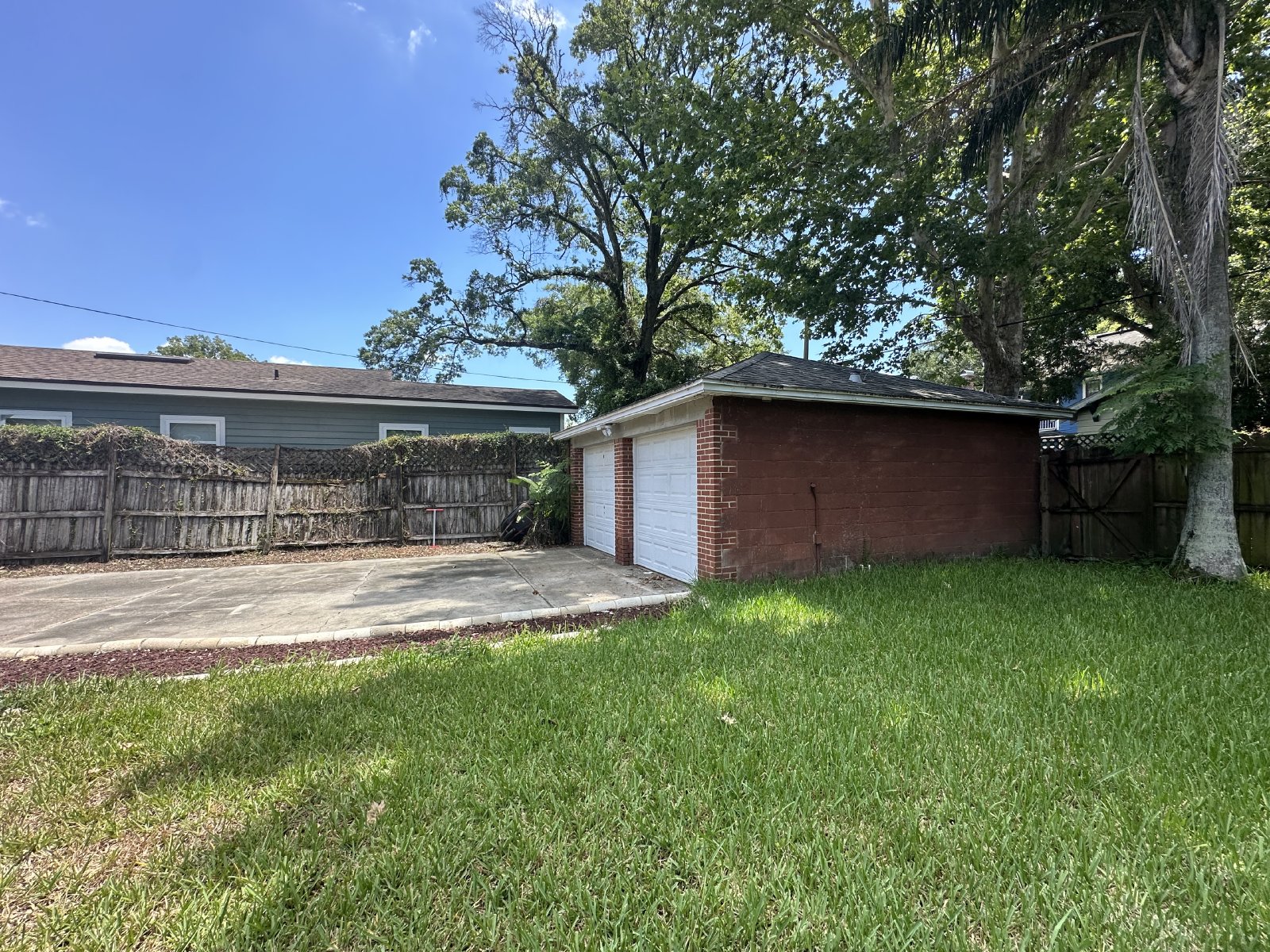 In the heart of Riverside, this spacious two bedroom, two bathroom home sits on a large lot, with lush landscape and a detached two car garage- a rare find! Enjoy the original hard wood flooring and cute character in this brick beauty! Front door opens to the spacious family room. Dining room off of living. There is a separate entrance to the home on the left that enters into a mud room/ drop zone! Kitchen in rear of home, with utility room heading out to the back yard! Two bedrooms are great size, one includes an en suite- sink, toilet, and stand up shower. Enjoy two deck spaces out back,