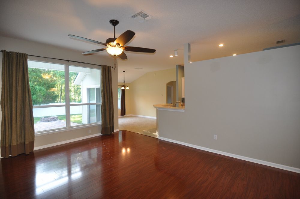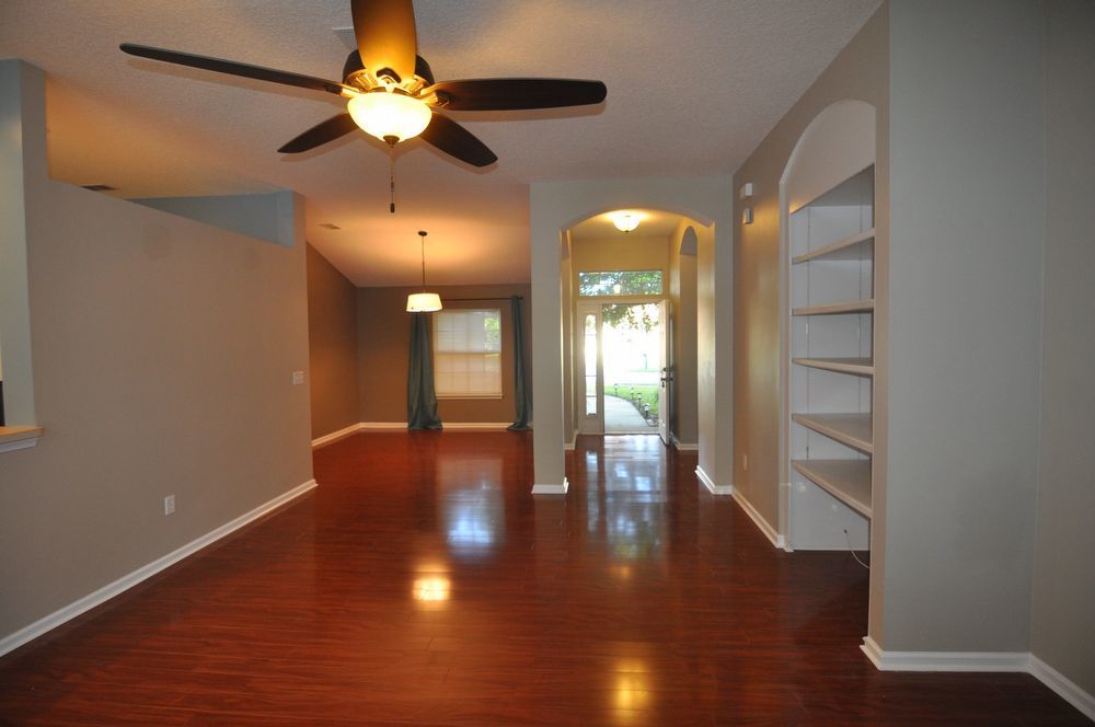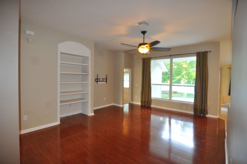 This stunning 4-bedroom, 2-bathroom home is nestled deep in Sutton Lakes on a fenced lot adjacent to a serene preserve. Enjoy beautiful hardwood floors throughout the main living areas, a separate dining room, and a formal living room. The spacious eat-in kitchen opens to a large family room with built-ins. Conveniently close to shopping, with a short commute to the beaches and NS Mayport. UP TO 2 APPROVED DOGS WELCOMED!!!